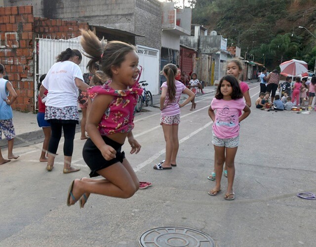 “Olhar essas crianças brincando na rua é a concretização de um sonho. Os vizinhos se reuniram e conseguiram doações de recicláveis, transformados em mesas, bancos carrinhos e outros brinquedos para entreter a criançada”, argumenta Vilma.