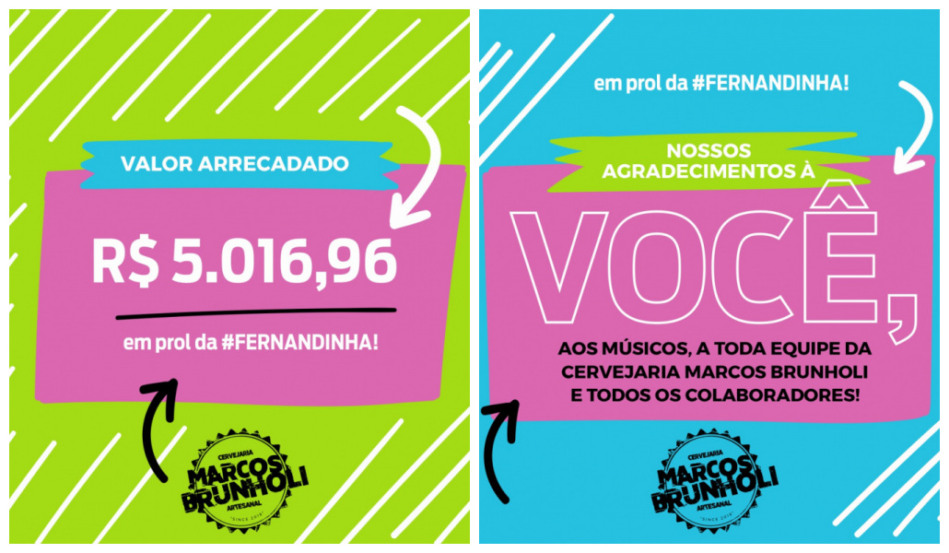 O evento “Rodízio Solidário” da Cervejaria Artesanal Marcos Brunholi, a fim de arrecadar fundos para a campanha #SalveAFernandinha, que bancará o tratamento da jundiaiense de 11 anos que luta contra Leucemia Linfóide Aguda. Além disso, os funcionários e músicos também não cobraram pelos serviços da noite.