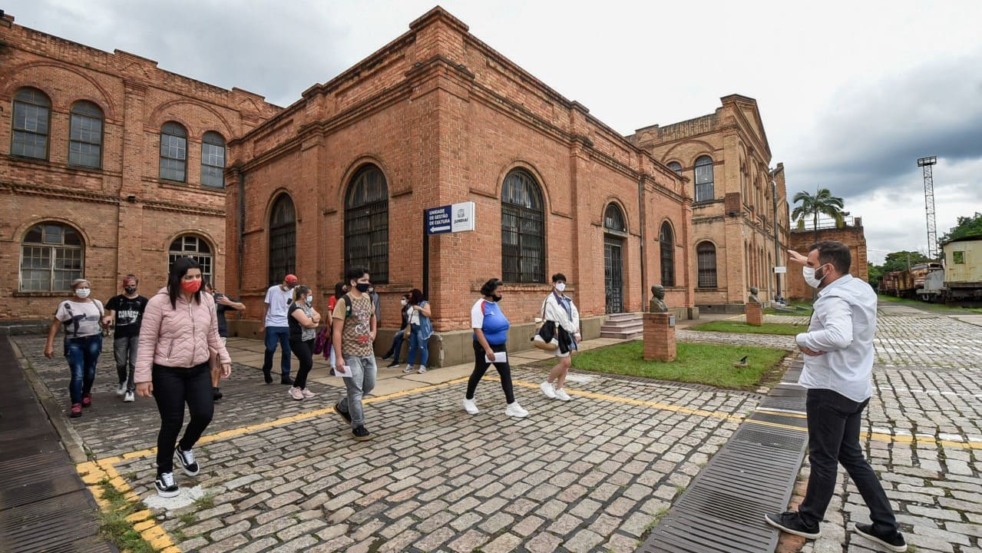 Os contemplados nos segmentos Jovem e Adulto da segunda turma do Benefício Social Emergencial da Prefeitura de Jundiaí iniciaram nesta segunda-feira (10), o cumprimento de suas jornadas colaborativas, contrapartida na forma de trabalho em equipamentos culturais e esportivos. Para o início das atividades, os grupos participaram de integração promovida pelas Unidades de Gestão de Cultura (UGC) e de Esporte e Lazer (UGEL) no Complexo Fepasa e no Complexo Esportivo Dr. Nicolino de Luca (Bolão).