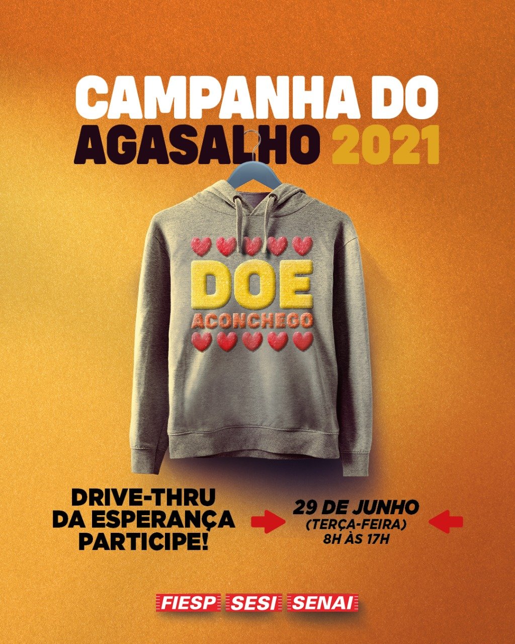 Em todas as escolas SESI de Jundiaí acontece, nesta terça (29), das 8h às 17h, o Drive-Thru da Campanha do Agasalho. A escola irá arrecadar roupas de frio, cobertores e mantas que serão doadas paras ONGs e comunidades carentes parceiras do sesi do município.