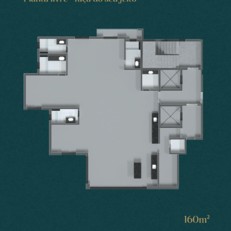 No Soleggiato, são 10 apartamentos de 130m² e 10 apartamentos de 160m², todos com planta livre. Isso significa que o projeto estrutural permite modificar com facilidade a distribuição dos espaços do seu imóvel. Com isso, o seu apartamento se torna único e totalmente personalizado, atendendo de forma ainda mais pontual as suas necessidades.