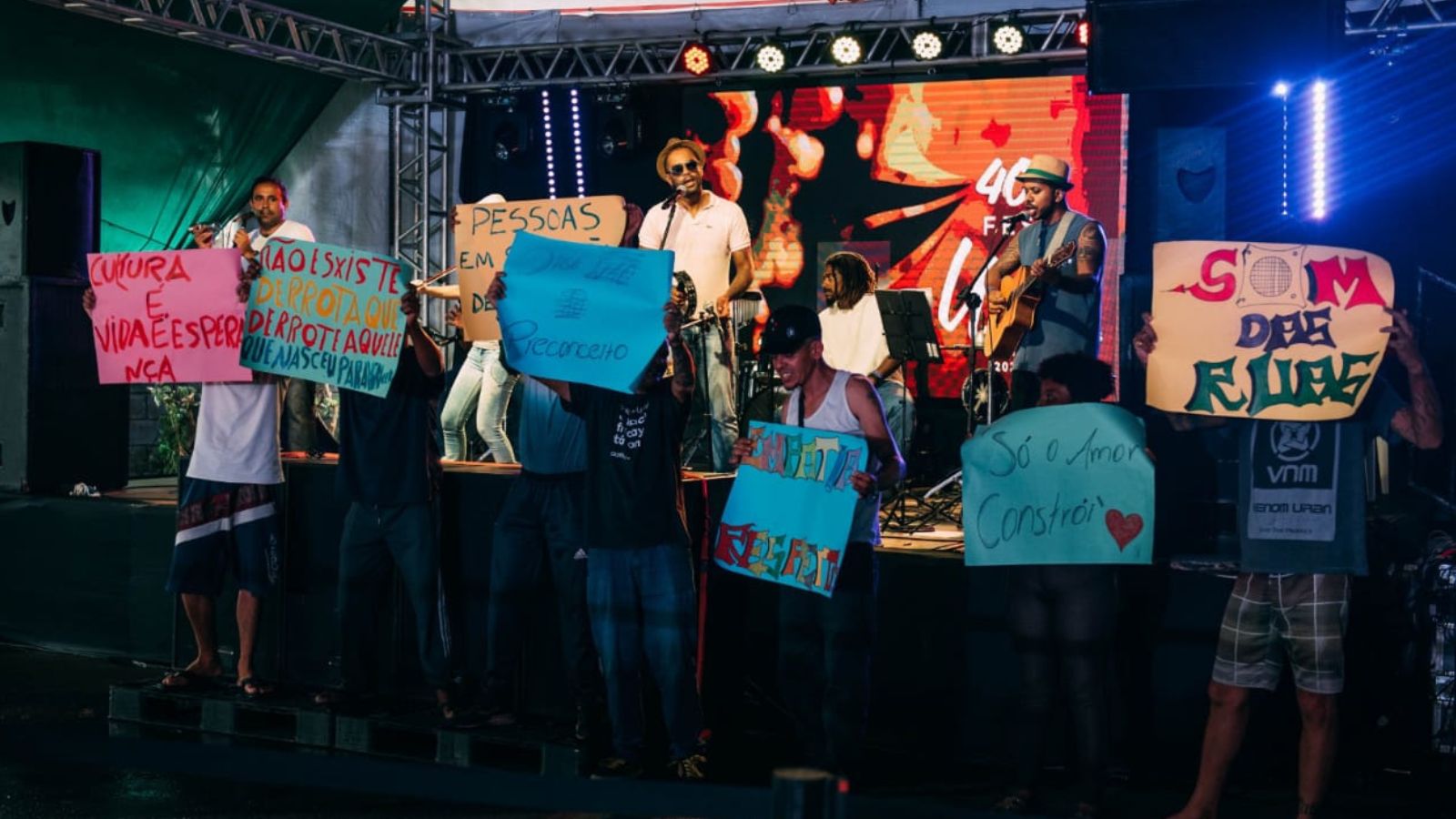 O show foi encerrado com a música ‘Comida’, dos Titãs, e as pessoas em situação de rua que marcaram presença para prestigiar os colegas estenderam os cartazes, emocionando o público.