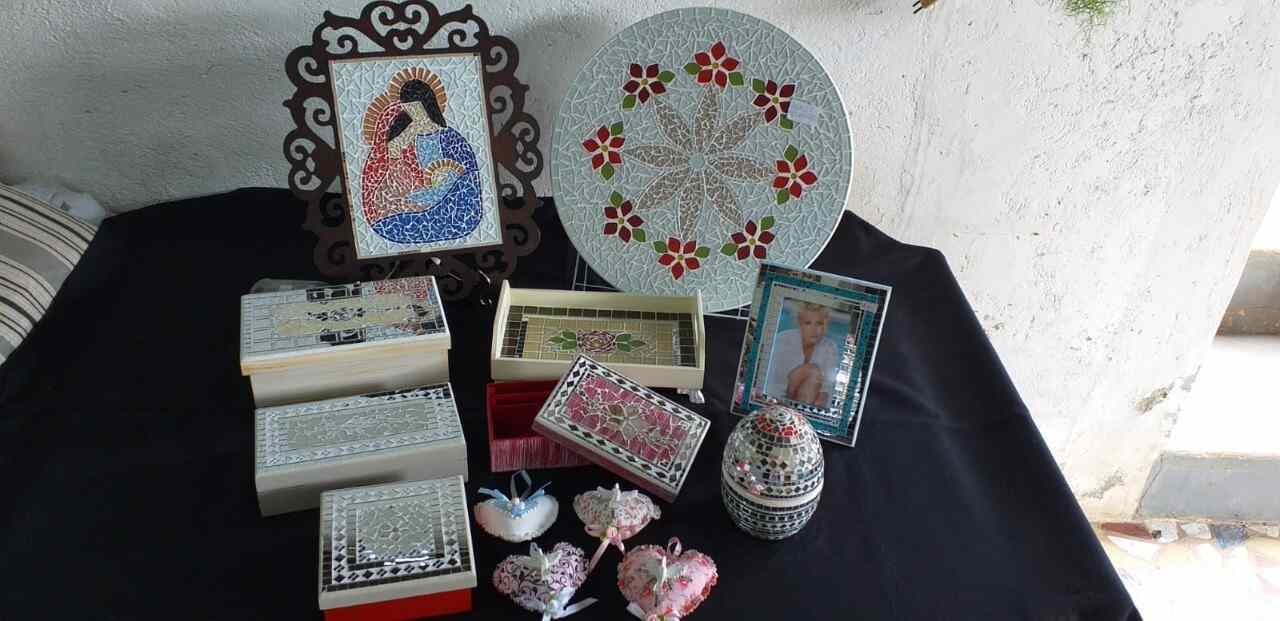 No local, estarão expostos mosaicos, peças para organizar e decorar, costura criativa, vidros decorados, panos de copa e muito mais, com preços a partir de R$ 7,00. Uma boa oportunidade para decorar, presentear e ajudar.