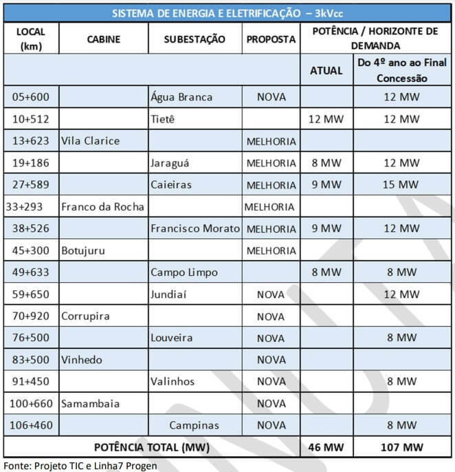 O concessionário irá formatar o novo sistema de energia de tração que, segundo as previsões da consulta pública, deverá estar operando até 2026.
