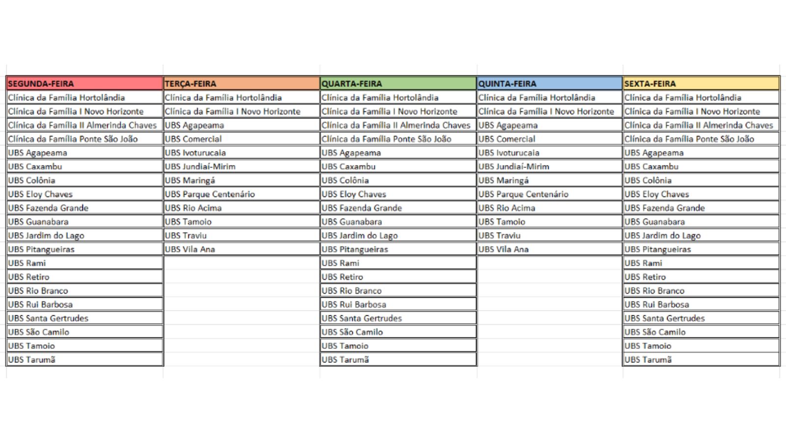 A Prefeitura informa que, assim que o município receber um novo lote do imunizante da Secretaria de Estado da Saúde, todas as Unidades Básicas de Saúde (UBSs) e Clínicas da Família voltam a ofertar as doses.