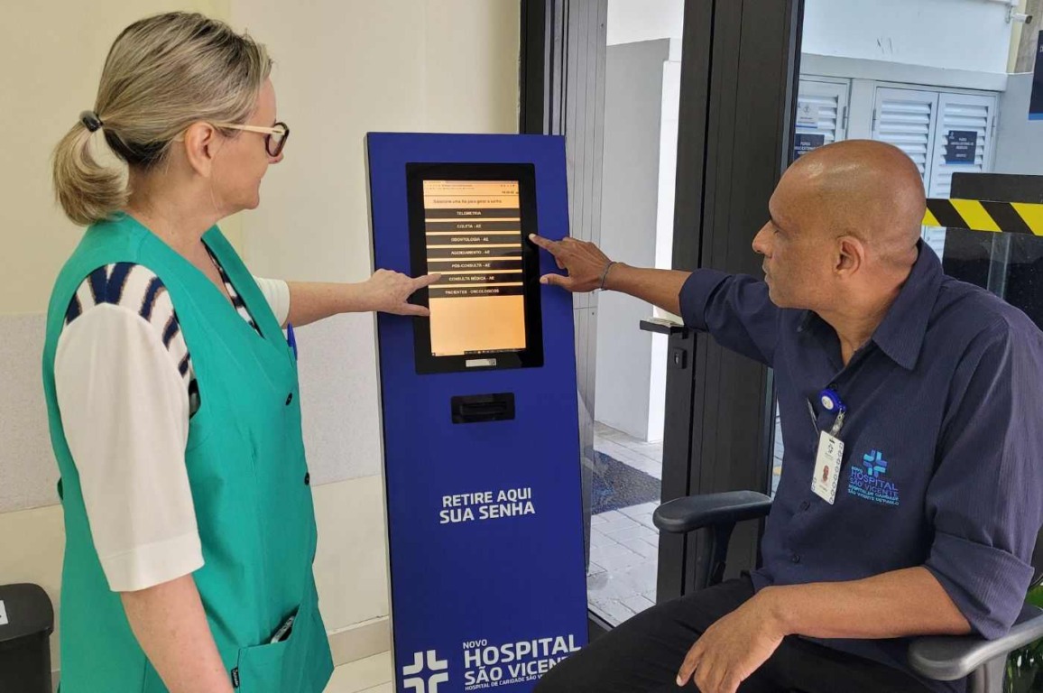 “Nós interagimos bem com o pessoal do Voluntariado e eles nos ajudam muito e são prestativos”, declara Vitorio de Jesus, que exerce a função de Controlador de Acesso, no Ambulatório de Especialidades. É com ele que a coordenadora da equipe de voluntários de lá, Claudia Ceolin, partilha as atividades no trabalho que realiza diretamente com os acompanhantes e pacientes do local.