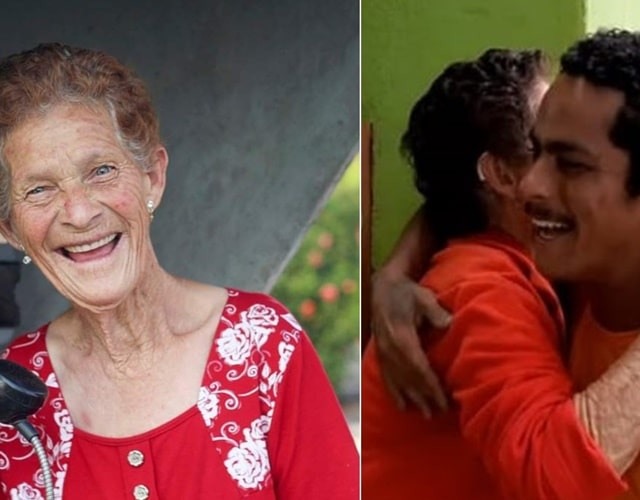 Nas imagens, os coletores ficam emocionados com o gesto da vovó e correm para agradecê-lá com um abraço apertado.
