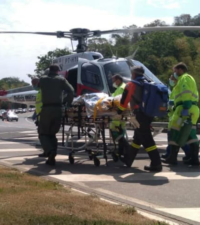 Para agilizar o socorro, um helicóptero Águia da PM teve que ser acionado. O estado da vítima era grave, mas ele estava consciente e foi levado para o Hospital Municipal de Bragança Paulista.