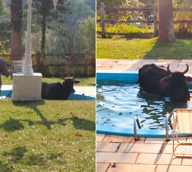 Um morador do bairro Observatório, em Vinhedo, começou a semana com uma surpresa inacreditável! Na manhã desta segunda-feira (14), Ricardo Araújo encontrou uma vaca dentro de sua piscina. De acordo com ele, após acordar, ouviu um barulho estranhos na parte de trás da casa e pela janela se deparou com a cena.