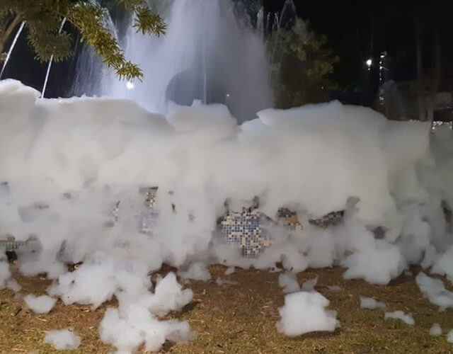 Como a fonte estava ligada, a pressão movimentou a água e acabou gerando espuma no chafariz do local conhecido como ‘praça da preguiça’.
