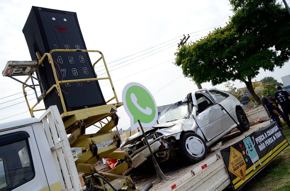 A Unidade Gestora de Trânsito e Transporte da Prefeitura de Várzea Paulista organizou, nesta terça-feira (21), a exposição de um acidente de trânsito com um celular e o símbolo do WhatsApp, maior rede de comunicação no Brasil, em cima do carro. O objetivo foi incentivar a conscientização e a educação no trânsito, dentro da programação da Semana Nacional do Trânsito na cidade.