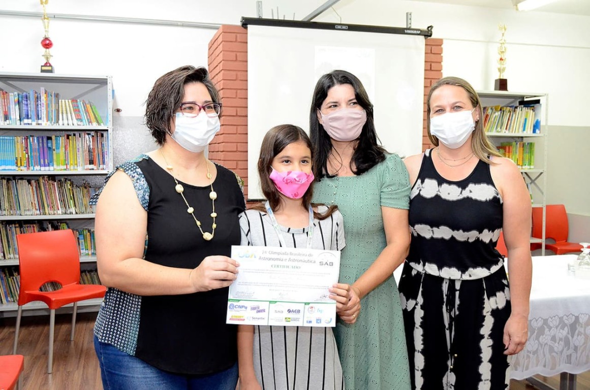Já Yasmin Maciel, medalhista de bronze, conta que essa foi sua primeira medalha. “Eu gosto de astronomia, fiquei feliz porque foi minha primeira medalha. Ela representa que sou boa nisso e quero continuar”. A aluna também do 5° C, de 10 anos, acertou 8 de 10 questões.