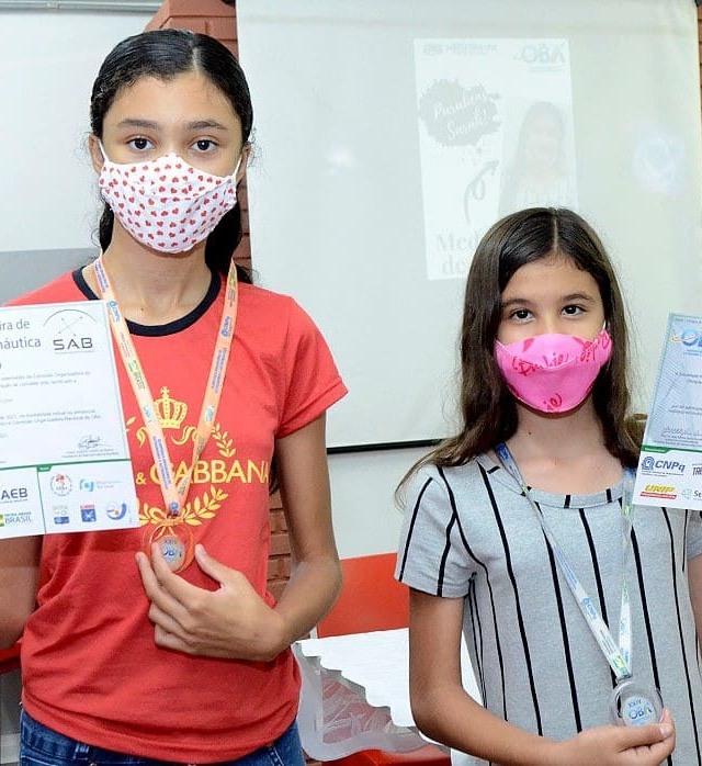 As alunas da escola Prefeito João Aprillanti, de Várzea Paulista, Sarah Isabelly Alves e Yasmin Maciel Roque conquistaram medalhas na 24° edição da Olimpíada Brasileira de Astronomia e Astronáutica, realizada nos dias 27 e 28 de maio. A entrega aconteceu nesta terça-feira (14) e contou com as presenças da diretora, Patrície Veraldi, da professora Adriana Sales, das representantes da Unidade Gestora Municipal de Educação, Glauce Rocco Parazzi e Tânia Cristina de Godoy Gonçalves e as alunas medalhistas acompanhadas de seus familiares.