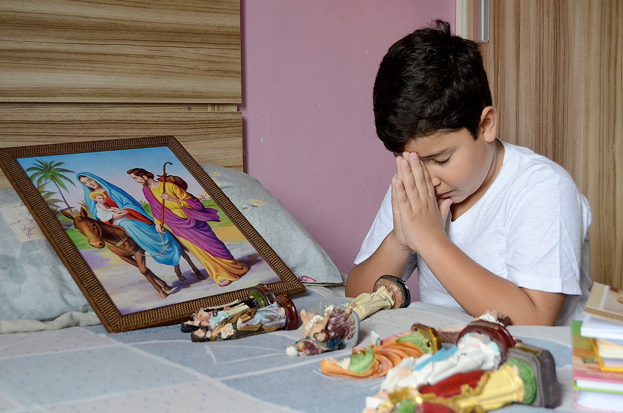 “Para ele não precisamos impor nada. Ele sempre acorda espontaneamente para ir à missa. Ele pode até dormir tarde, mas no outro dia acorda cedinho para a missa das sete horas”, conta.
