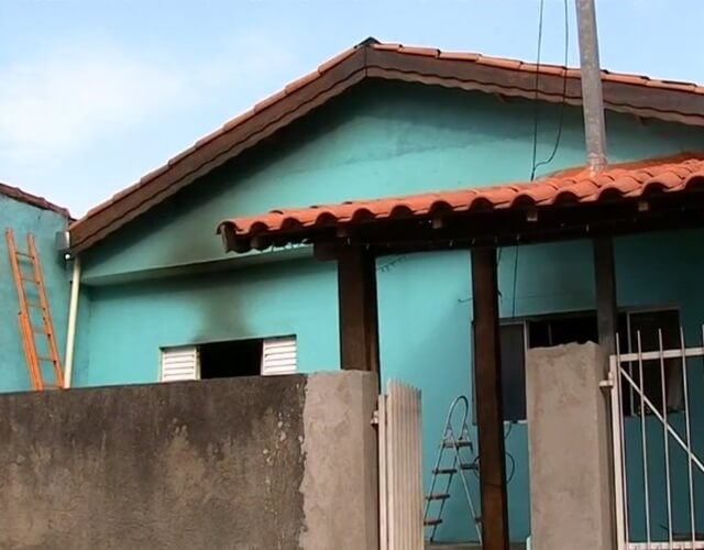 O incêndio atingiu um quarto e dois banheiros, a fumaça deixou marcas na parede do lado de fora da residência.
