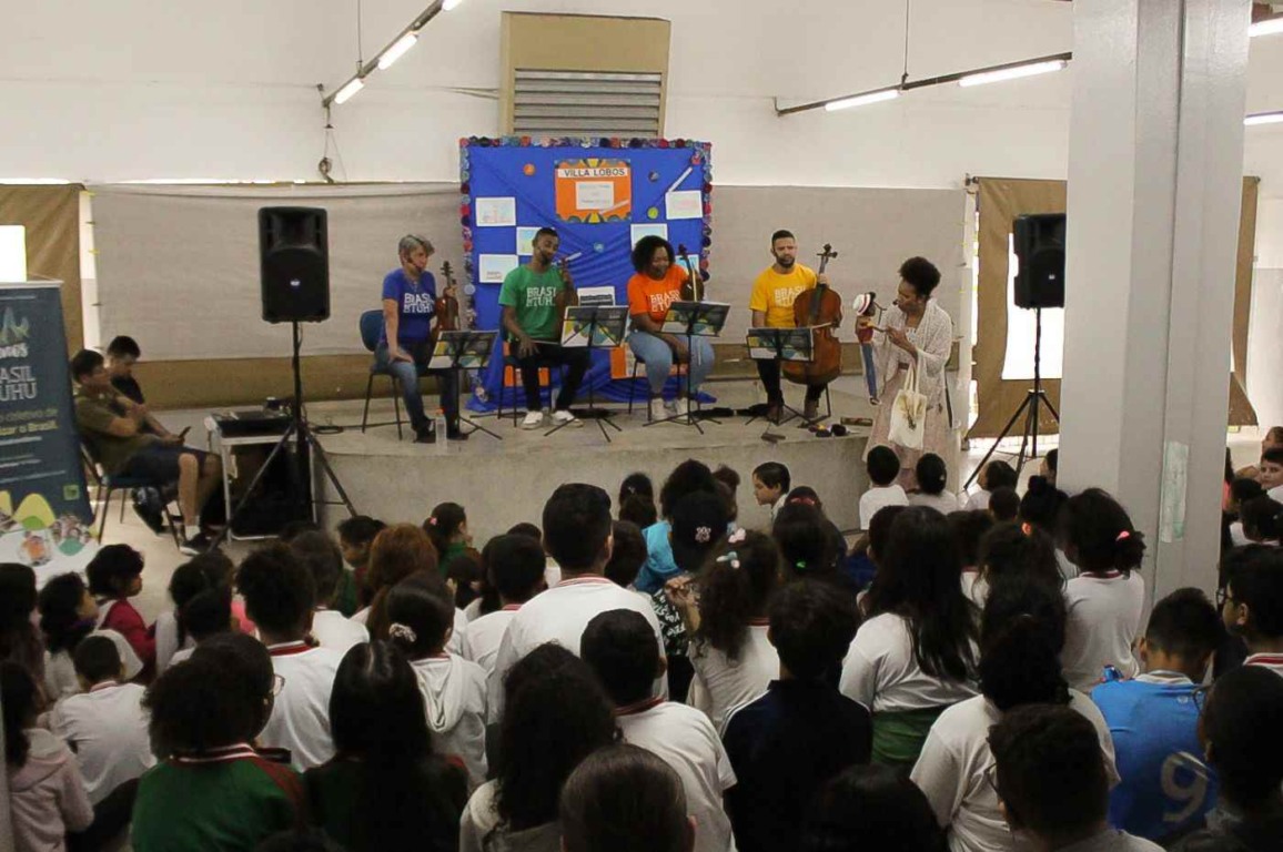 O repertório, composto com canções e cantigas populares, foi tocado pelo quarteto de cordas liderado pela diretora pedagógica do projeto Brasil de Tuhu e violinista, Carla Rincón. “É uma imensa alegria manter um projeto há 15 anos com apoio de políticas de Estado. Como sempre, a música brasileira se mantém forte e aqui nós apresentamos a obra de Heitor Villa-Lobos, que além de músico também era educador”, argumentou Rincón.