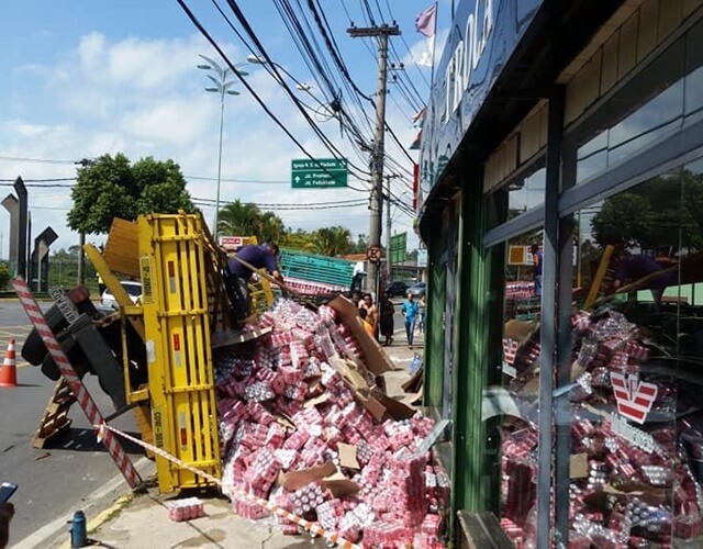 Nesta sexta-feira (29), um caminhão, que transportava refrigerantes Coca-Cola, tombou na Avenida Fernão Dias Paes Leme, em Várzea Paulista (SP).