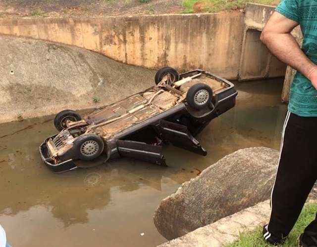 De acordo com a página ‘POP TV’, o carro caiu dentro do córrego após ser fechado por outro veículo, que fugiu sem prestar socorro.