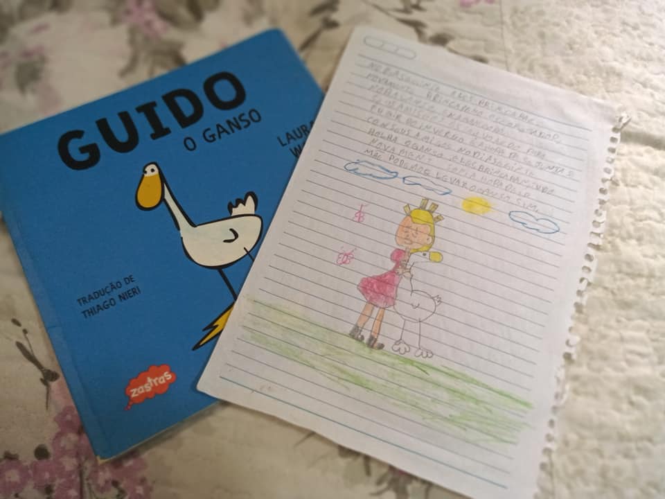 No ato da entrega dos livros e dos alimentos, os voluntários pedem aos responsáveis para que eles façam, juntos, um resumo simples para incentivar a escrita. O resultado tem sido bem positivo para Elaine, que tem recebido vídeos das crianças no momento da leitura.