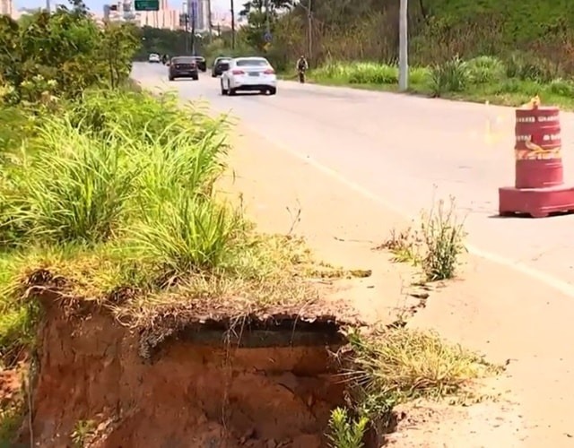 Uma cratera na marginal do Rio Jundiaí, em Várzea Paulista (SP), deixa motoristas preocupados. O buraco fica em um trecho da via que não tem acostamento.