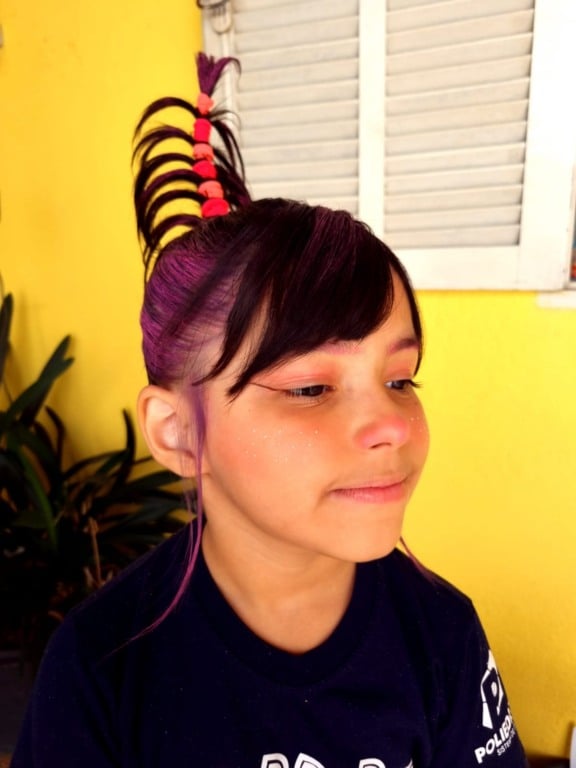 A inspiração para o cabelo da menina foi o desenho animal Trolls. “Ela gosta bastante e achamos divertido os cabelos deles.” O Dia do Cabelo Maluco deste ano acabou de acontecer, mas já há expectativa para o próximo. “Minha filha amou, ela sempre espera por essa data do ano, e já está pensando no ano que vem o que vai fazer no cabelo”, disse Mayara.