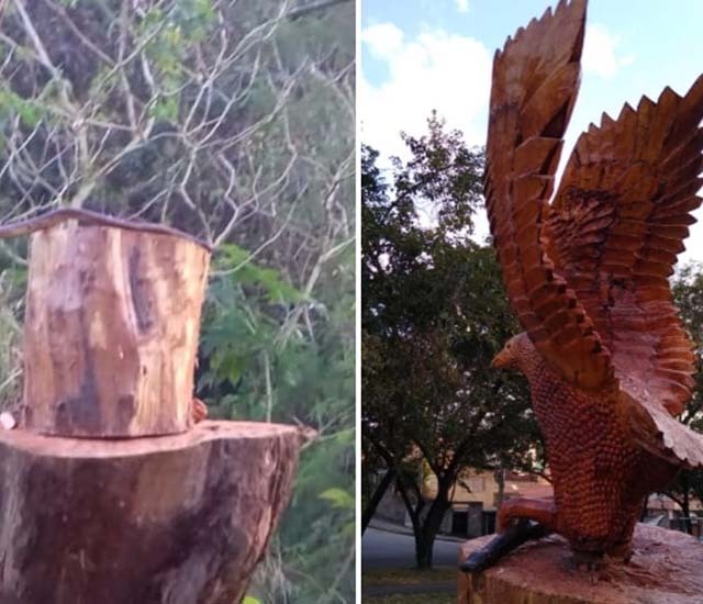 O gestor escreveu, ainda, um pedido de desculpas ao escultor, que teve a belíssima iniciativa de produzir a águia em um tronco de árvore e ceder para o poder público colocar no local.