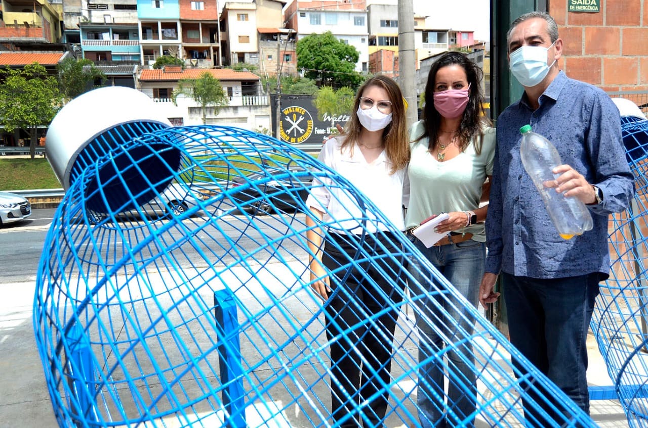 Os minis ecopontos são feitos de metal e foram projetados pelas arquitetas Shayene Franchi e Roberta de Paula, ambas da Unidade Gestora de Infraestrutura.