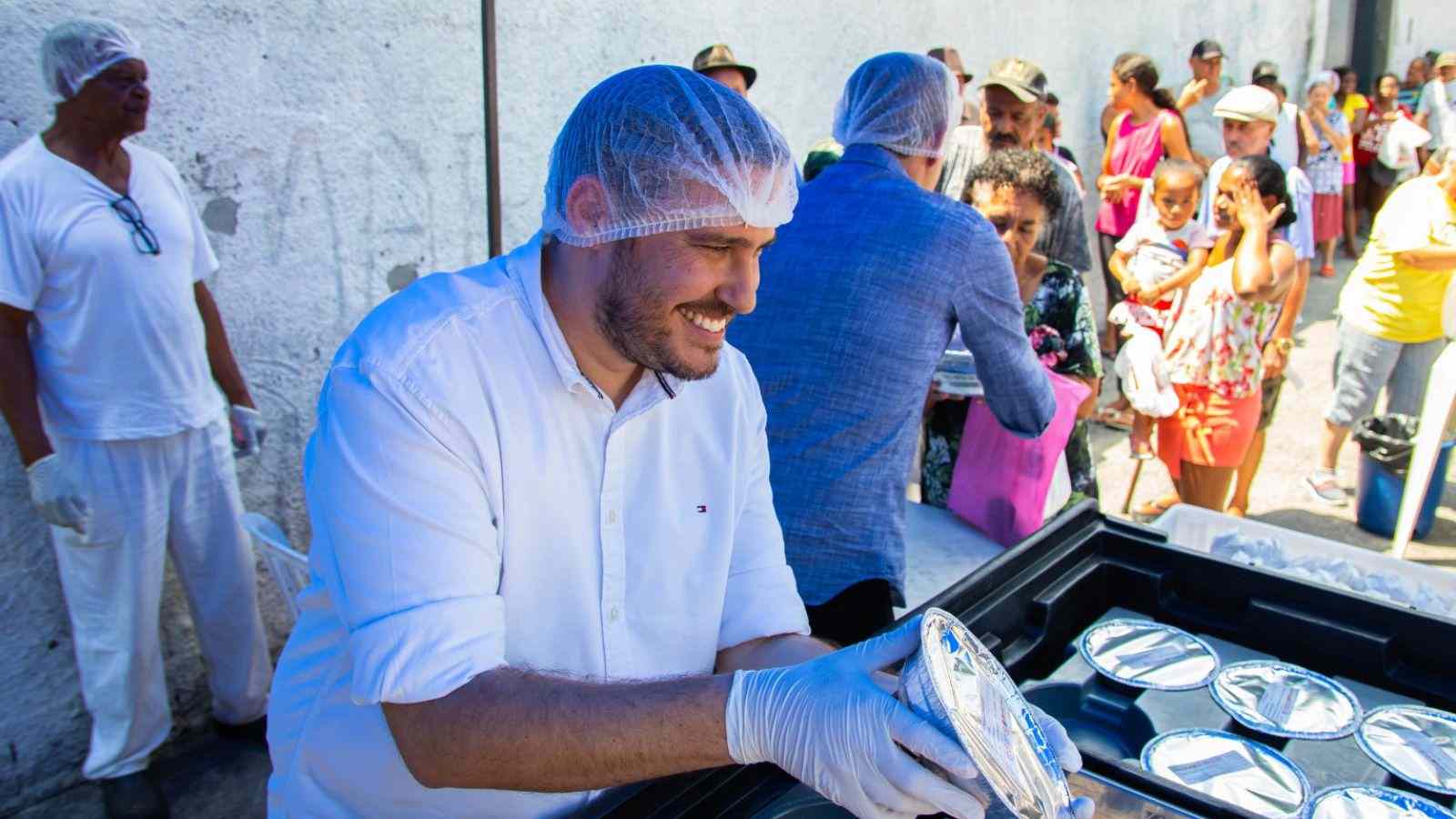 O prefeito Rodolfo Braga e o vice-prefeito João Paulo estiveram na linha de frente, ajudando na distribuição das marmitas. Com toucas e luvas, a dupla teve a oportunidade de interagir diretamente com a comunidade, garantindo que as refeições fossem entregues de maneira eficiente.