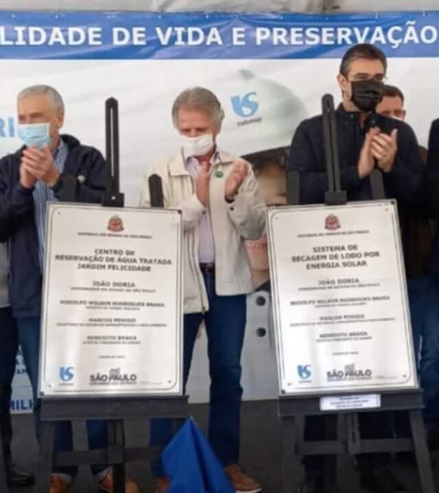 O evento foi realizado para o descerramento das placas inaugurais referentes à entrega das obras de infraestrutura e implantação do sistema mecanizado de secagem de lodo por meio de energia solar realizadas no município.