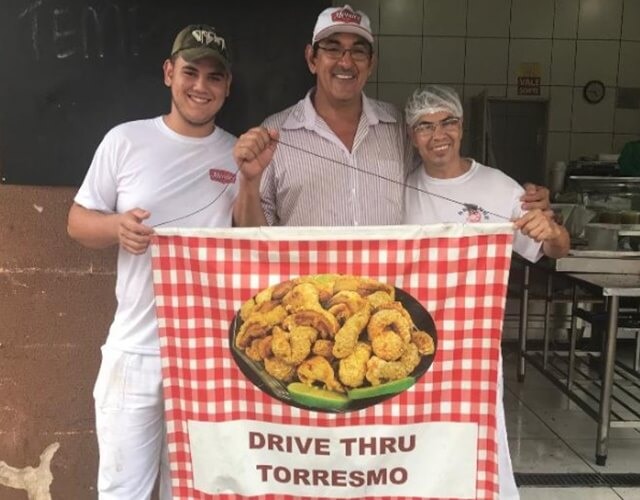 Em outubro do ano passado, os amigos Mario Aparecido do Prado, 52 anos, e Edson Francisco da Silva, de 55 anos, decidiram montar um drive-thru de torresmo.