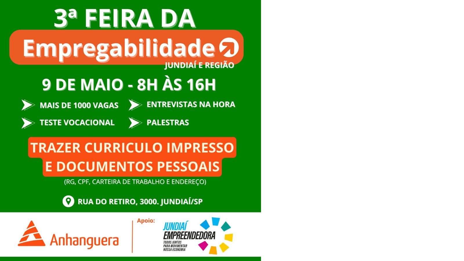 A cidade de Jundiaí recebe nesta sexta-feira (9), das 8h às 16h, a 3ª edição da Feira da Empregabilidade, promovida pela Faculdade Anhanguera. Gratuito e aberto ao público, o evento tem como principal objetivo aproximar estudantes e a comunidade das empresas da região, criando uma ponte direta entre talentos locais e oportunidades no mercado de trabalho.