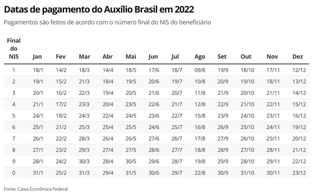 O governo antecipou, de 9 a 11 dias, a depender do final do Número de Identificação Social (NIS), o calendário de pagamento do Auxílio Brasil no mês de agosto. Determinaram a mudança em instrução normativa publicada no “Diário Oficial da União” desta segunda-feira (25).