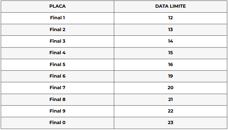 Quem preferir poderá realizar o pagamento em fevereiro, sem o desconto, também observando a data de vencimento conforme o número final da placa.