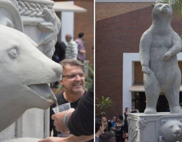 A fonte terá a forma de urso (símbolo da cervejaria) e vai derramar cerca de 300 litros da bebida, a partir das 11h. Operando até às 17h, se o estoque não acabar antes.