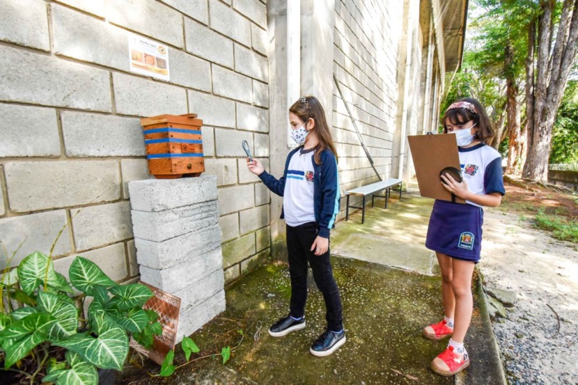 “É muito legal aprender enquanto estamos procurando animais na parte de fora, no pátio”, disse Lavínia que foi complementada pela colega Mirela: “eu já tinha visto abelhas na casa da minha avó, mas não tão de perto”, disse a aluna enquanto observava os insetos pela sua lupa.