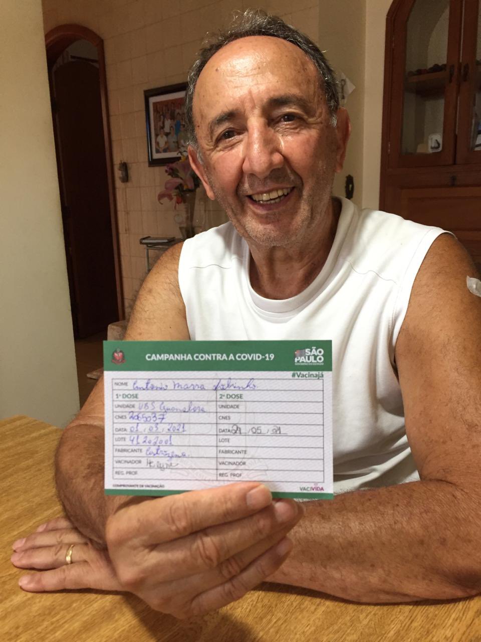 A comemoração ficou maior ainda quando o casal recebeu as vacinas contra a Covid.