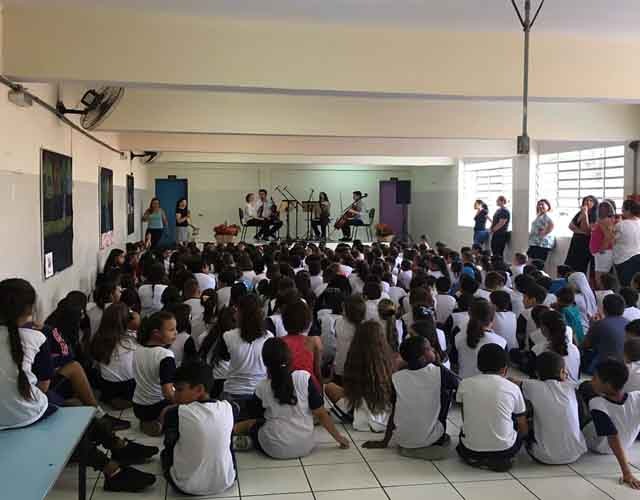 Neste ano, 970 de crianças assistiram aos concertos descentralizados também realizados na Emeb Maria Angélica Lourençon (Corrupira), em outubro; na Emeb Luiz Bárbaro (vila Joana), em setembro; e na Emeb Flávio D’Angieri (vila Virgínia), em agosto.