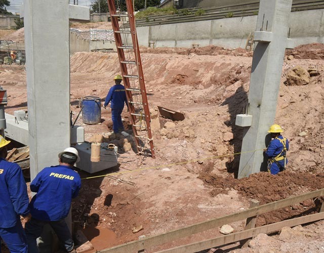 A montagem das peças dará o corpo do prédio, que, na sequência, receberá o fechamento das lajes e passará a receber os fechamentos das paredes externas e internas, com a determinação dos espaços dos ambientes.