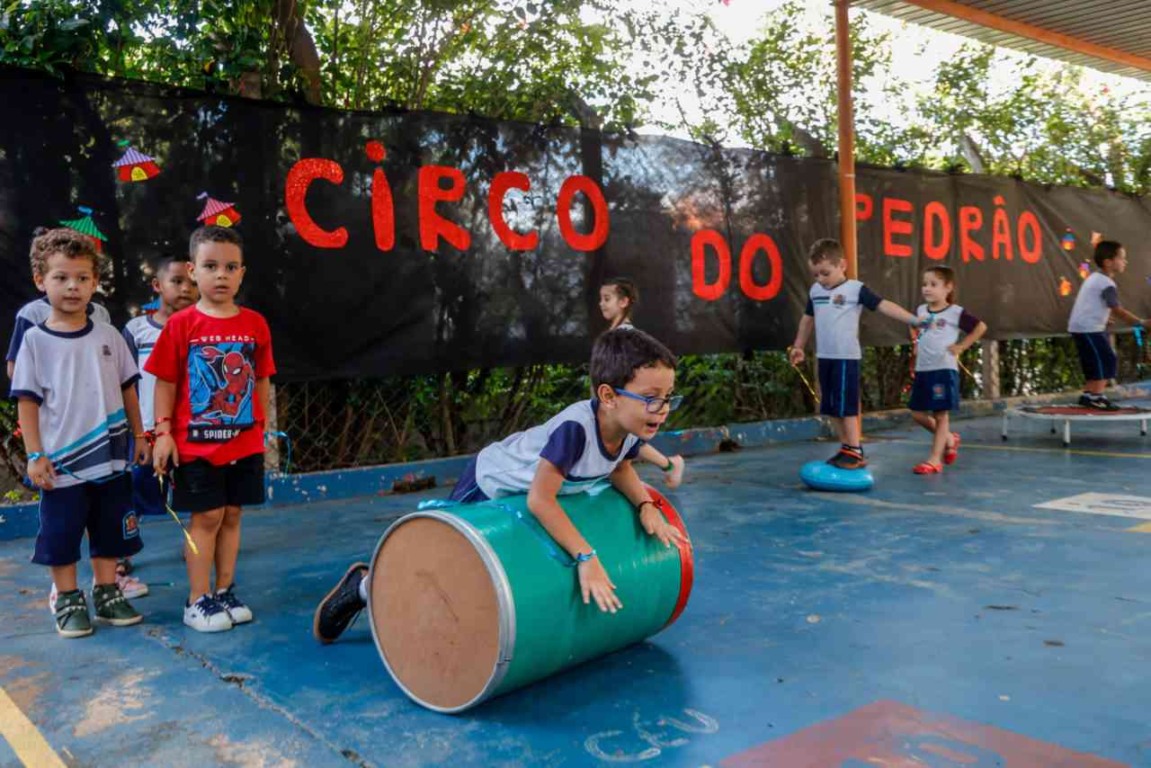 “Respeitável público, o ‘Circo do Pedrão’ chegou”. Com uma apresentação animada para os familiares e amigos, as crianças da Emeb Vereador José Pedro Raymundo, na vila Rio Branco, encerraram o projeto com atividades circenses desenvolvido ao longo do ano nas aulas de Educação Física.