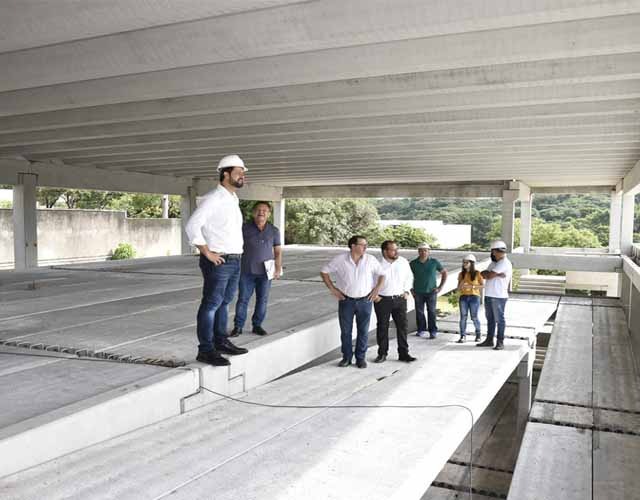 Cinco meses depois desde a última vistoria é evidente que a obra avançou muito, com toda a estrutura pronta e já iniciada a etapa de fechamento do prédio escolar.