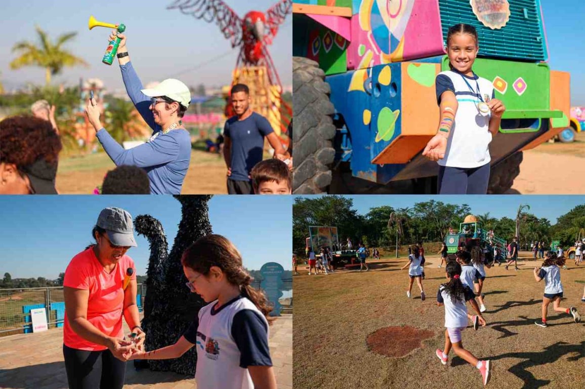 O dia contou como um sábado letivo no calendário municipal. Ao lado dos responsáveis, as crianças precisaram encontrar bandeiras de oito cores diferentes espalhadas pelo parque. Em cada ponto, elas recebiam a pintura da cor conquistada no braço. Os 100 primeiros a completarem o desafio ganharam medalhas pela participação.