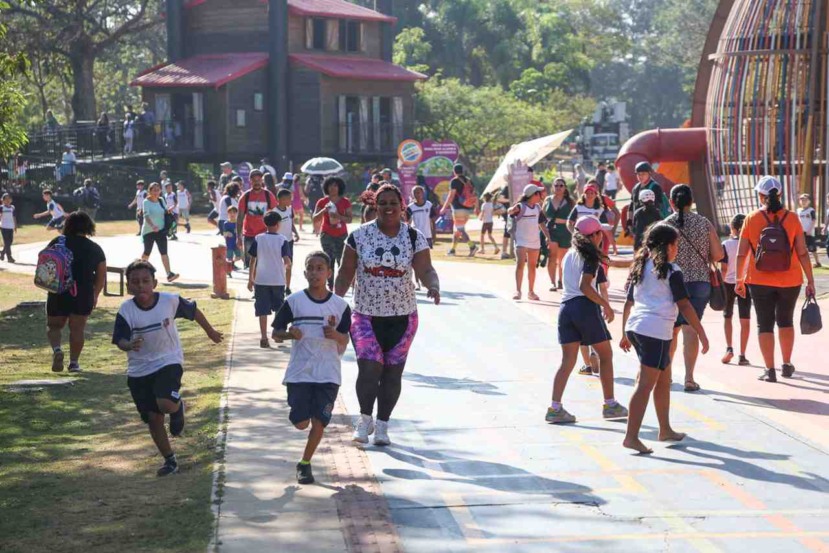 O dia contou como um sábado letivo no calendário municipal. Ao lado dos responsáveis, as crianças precisaram encontrar bandeiras de oito cores diferentes espalhadas pelo parque. Em cada ponto, elas recebiam a pintura da cor conquistada no braço. Os 100 primeiros a completarem o desafio ganharam medalhas pela participação.