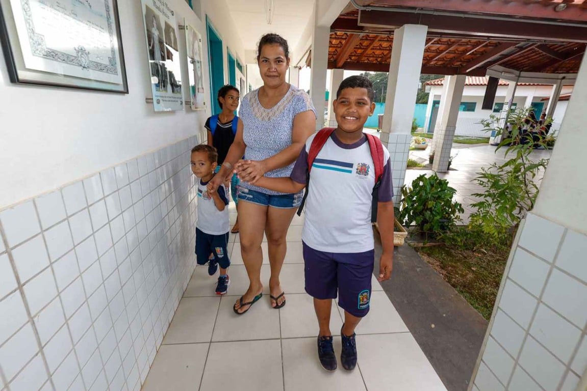 O Pedro dos Santos, da mesma idade, também teve companhia para o dia especial: a mãe, a auxiliar de limpeza Patrícia Lima, e os irmãos Mariana e Miguel, de dez e quatro anos. “Eu brinquei muito nas férias, principalmente de pega-pega. Não via a hora de voltar, principalmente para rever a diretora Ana Lúcia Cassiano e ter aulas de Língua Portuguesa. E quem me acompanhou hoje com minha mãe foi minha irmã, que já estudou aqui, e meu irmão pequeno, que agora vai para a Emeb Benedita Alzira, mas quer estudar aqui também.”