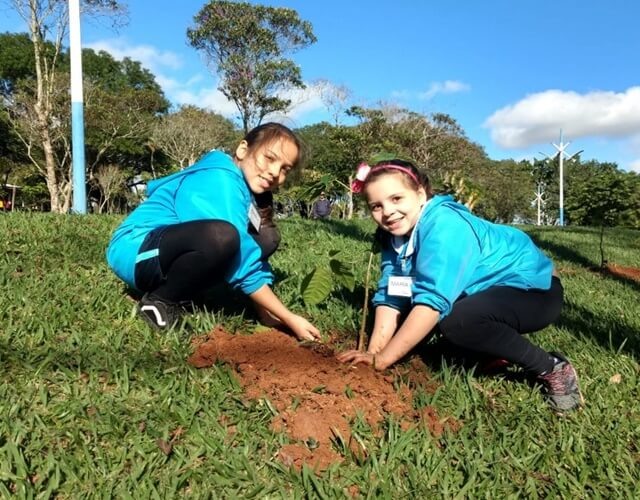 Maria Vitória da Silva e Adrielli Franco também se empenharam em plantar a muda em área no Parque da Cidade. “Eu já tinha plantado árvores antes, mas essa é diferente, pois estamos sabendo a importância delas para o meio ambiente e para a água”, explica Maria Vitória.