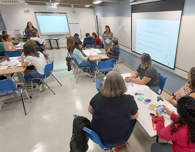 No mesmo grupo de Thaís, a Niceias Batista atua é professora multiplicadora da Emeb Nassib Cury, no Fazenda Grande, trouxe experiências e demandas. “Espero levar daqui novas ferramentas para compartilhar com os colegas”.