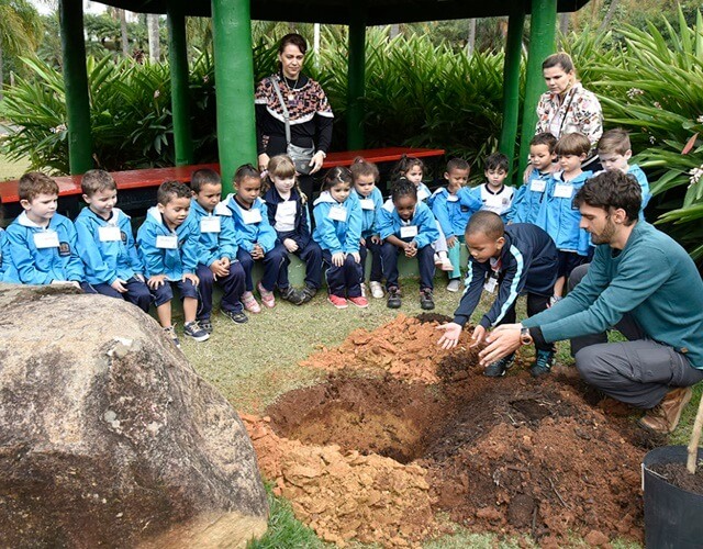 Vitor Gabriel Oliveira ajudou com entusiasmo no plantio da árvore e prometeu que irá voltar ao Botânico. “O Jardim é mais legal do que eu imaginava. Quero levar um mapa daqui para levar ao meu pai e minha mãe para que me tragam de volta”.