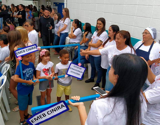 A Escola Municipal de Educação Básica (Emeb) Professora Cinira Cardona Mazzali, no Jardim Tamoio, foi reinaugurada neste sábado (7). A escola é a mais recente unidade a se tornar uma Escola Inovadora, com ambiência desenvolvedora e brinquedos que promovem integração com a natureza.