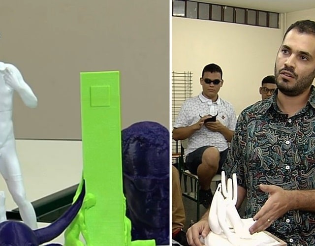 Com réplicas em 3D de monumentos e obras famosas, o professor de artes visuais, Santiago Lemos, apresenta as peças aos alunos cegos do Centro de Reabilitação e Apoio ao Deficiente Visual (Cebrav), em Goiânia (GO).