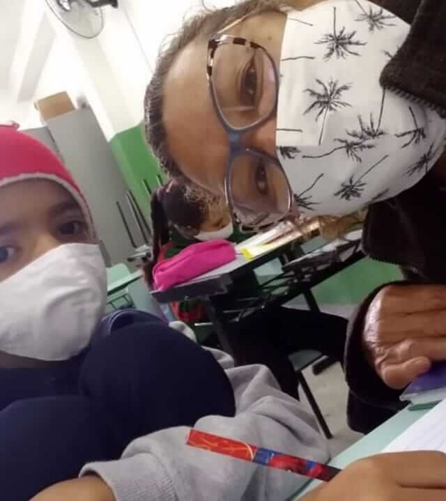 Desde 2018, a professora trabalha no suporte pedagógico à Pedro e sua família, mas por causa da pandemia, precisou adaptar ainda mais o conteúdo específico que preparava para o aluno. Dessa forma, o atendimento da educação inclusiva agora tem vídeo chamadas e algumas atividades presenciais – seguindo todos os protocolos de segurança e saúde.