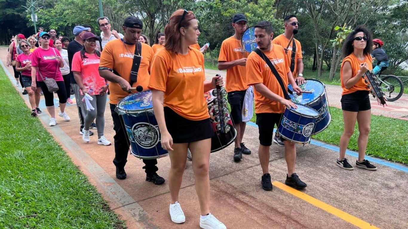 A bateria adicionou um toque especial ao evento, proporcionando uma trilha sonora vibrante e envolvente. O som contagiante das batidas ecoou pelo parque, criando uma atmosfera animada e unindo os participantes.